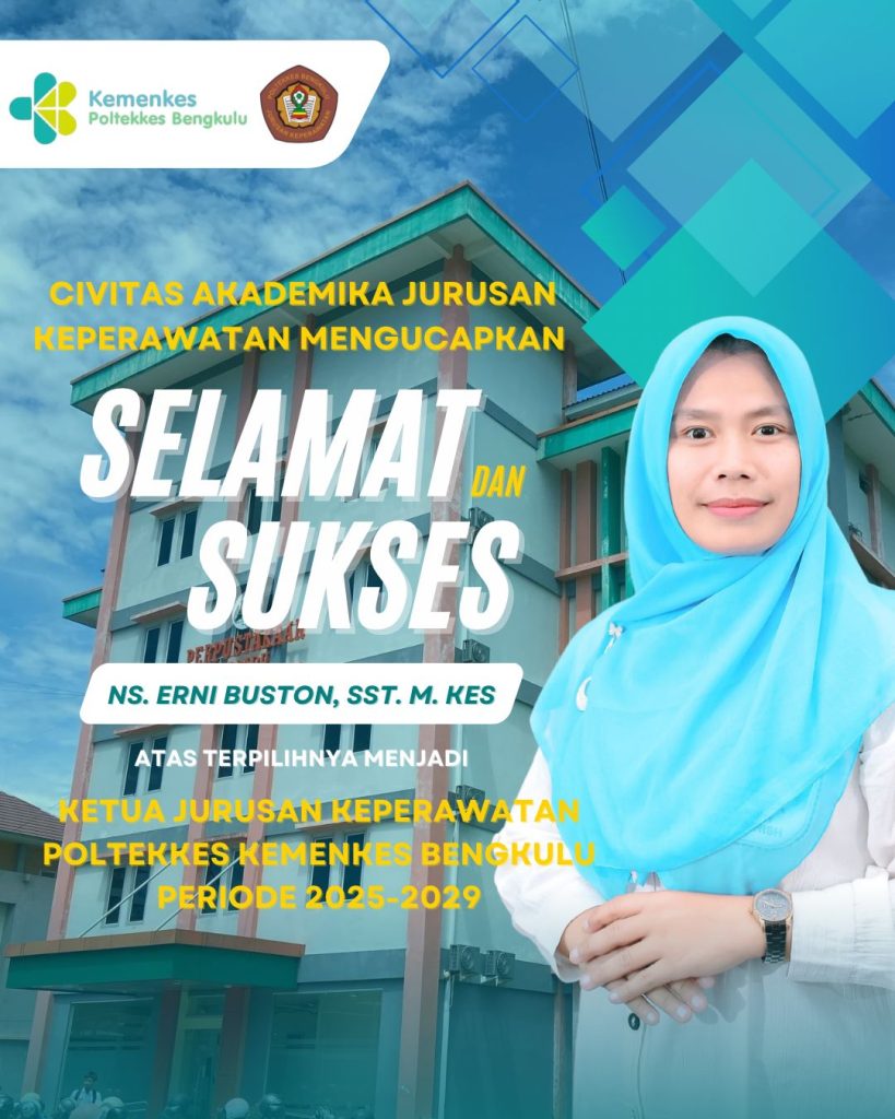 Dalam struktur baru ini, jabatan Ketua Jurusan Keperawatan diamanahkan kepada Ns. Erni Buston, SST, M.Kes, yang sebelumnya menjabat sebagai Sekretaris Jurusan. Dengan pengalaman dan dedikasi yang kuat di bidang pendidikan keperawatan, diharapkan beliau mampu membawa Jurusan Keperawatan menuju pencapaian yang lebih baik dan berdaya saing.