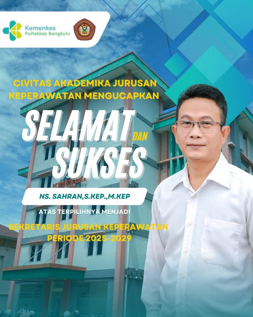Mendampingi beliau, Ns. Sahran, S.Kep, M.Kep dilantik sebagai Sekretaris Jurusan, yang akan berperan penting dalam mendukung tata kelola administrasi dan akademik jurusan.