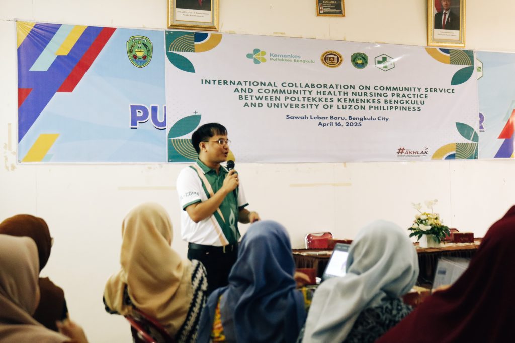 Bengkulu, 16 April 2025 – Dalam rangka meningkatkan kapasitas kader kesehatan dalam pencegahan penyakit tidak menular, Poltekkes Kemenkes Bengkulu bekerja sama dengan University of Luzon, Filipina, melaksanakan kegiatan pengabdian masyarakat bertema “Pelatihan Kader dalam Integrasi Layanan Primer Intervensi Pencegahan Diabetes Melitus (DM) di Posyandu.”Kegiatan ini diselenggarakan di Puskesmas Sawah Lebar dan diikuti oleh para kader kesehatan dari wilayah Sawah Lebar Baru.